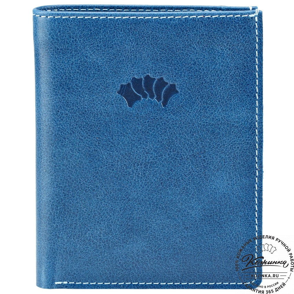 Кожаное портмоне "Россия" (синее) - небольшой удобный бумажника с отделением для купюр и отсеками для пластиковых карт.