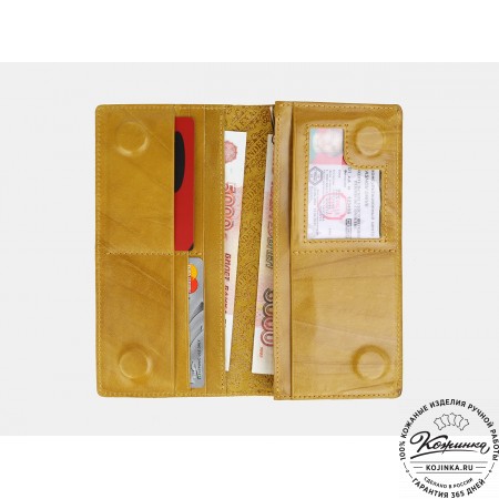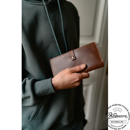 Кожаное портмоне "Пушкин" (оливковое) - вместительное стильное портмоне из мягкой качественной кожи.