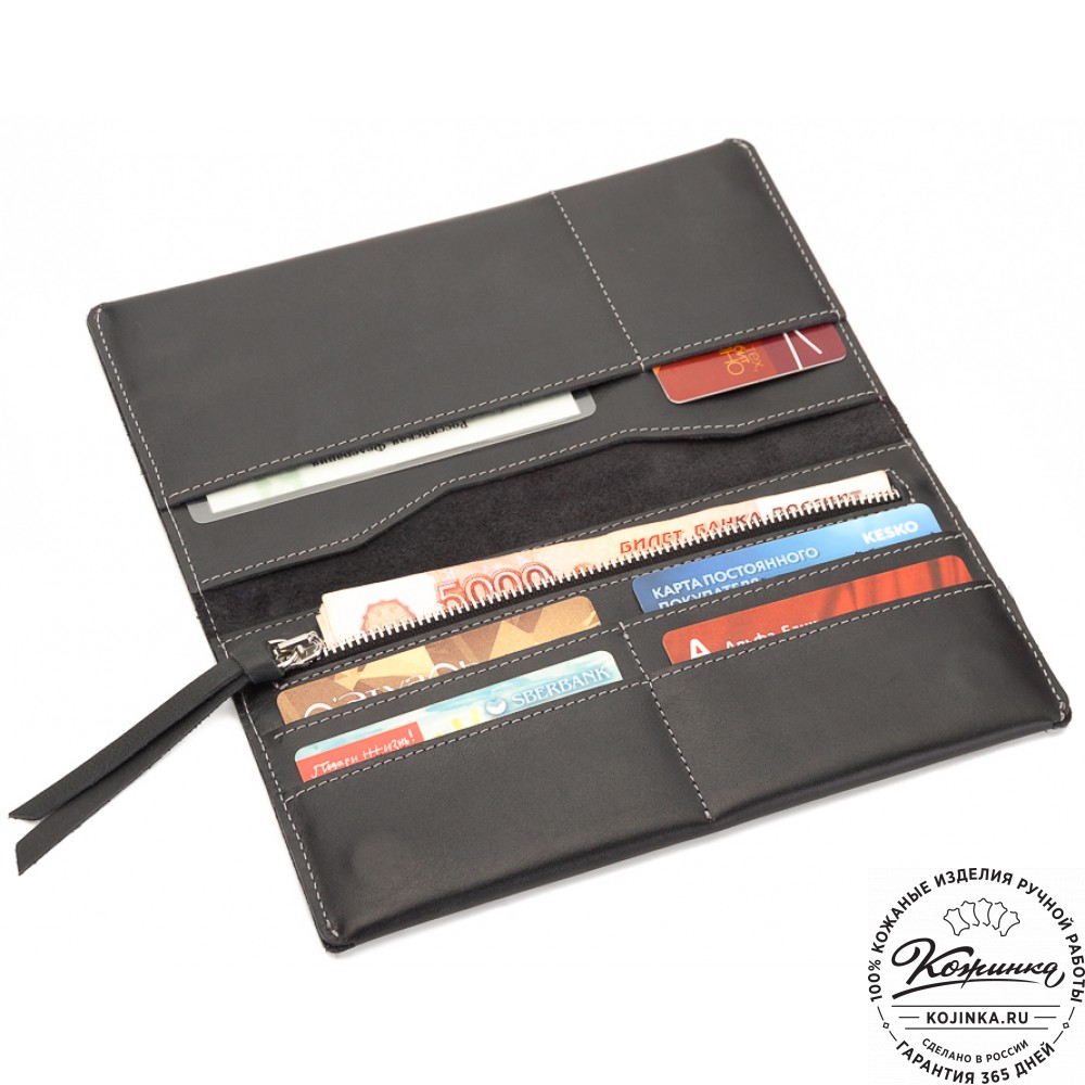 Портмоне вместит в себя много наличных денег, монеты в специальном отделении на молнии, пластиковые карты и даже чеки от покупок в магазинах. Все отделения с подкладом, аккуратно прострочены.