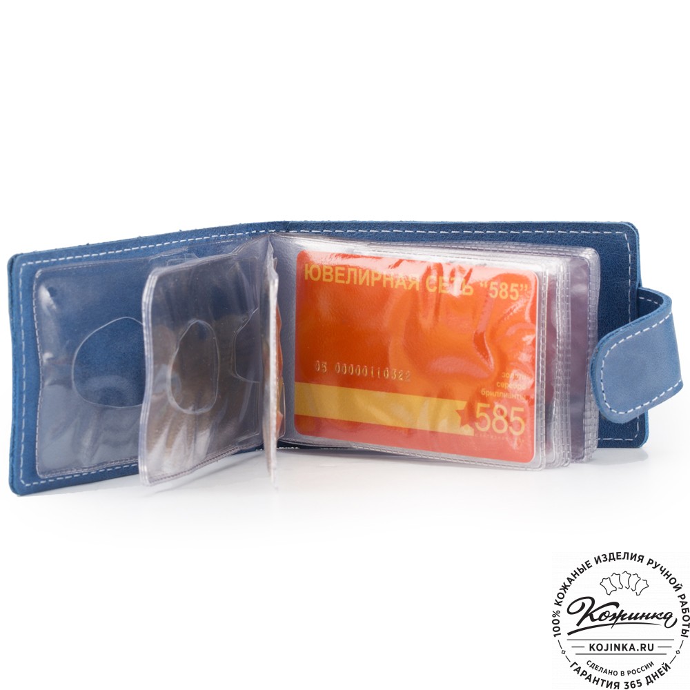 Кожаная визитница Одесса (синяя) - и все скидочные карты на месте!