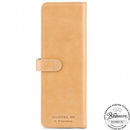 Футляр изготовлен из жёсткой толстой кожи высочайшего качества. Он отлично держит форму и надежно защищает очки от повреждений.