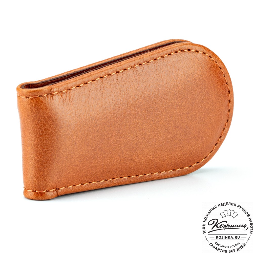 Зажим изготовлен из мягкой, но достаточно толстой и прочной кожи высокого качества.