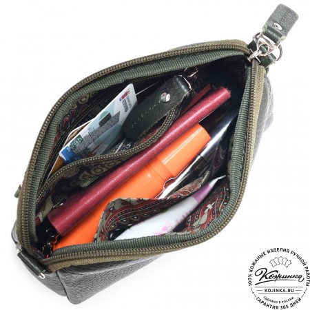 У сумочки одно отделение, как раз для телефона, документов и косметических мелочей.