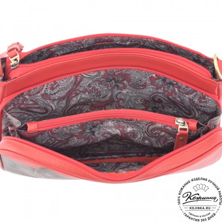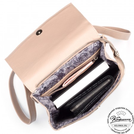Сумка изготовлена из натуральной кожи и замши высокого качества. Подкладка внутри выполнена из прочной ткани с узором.