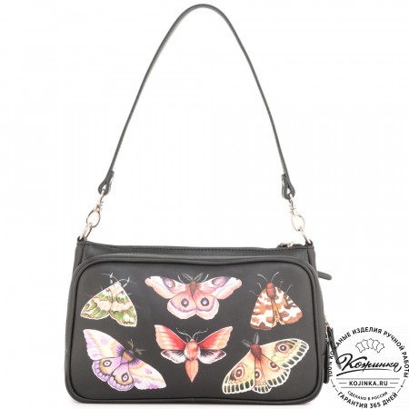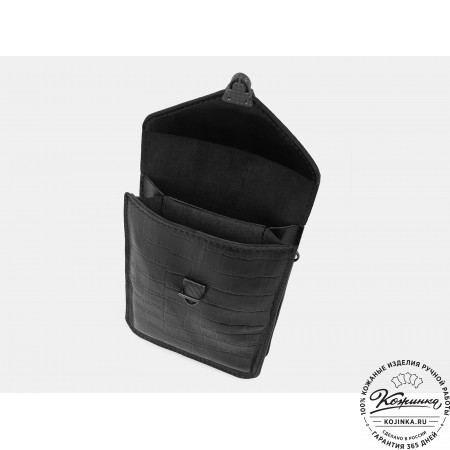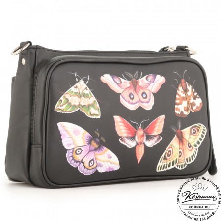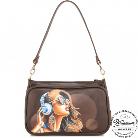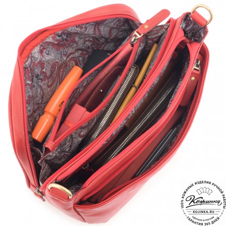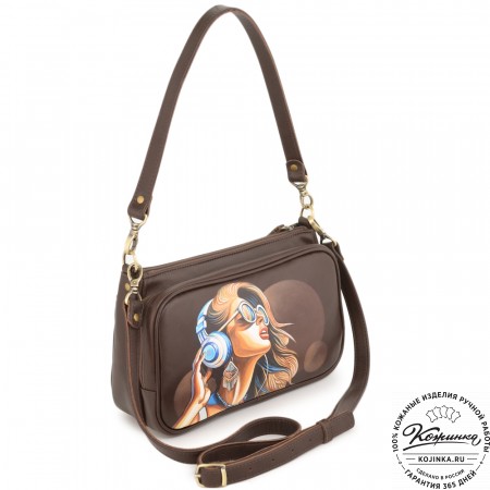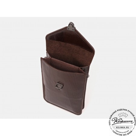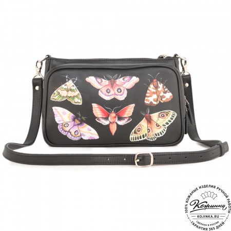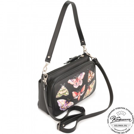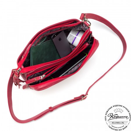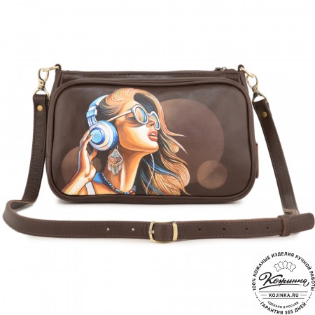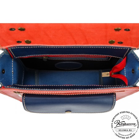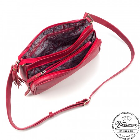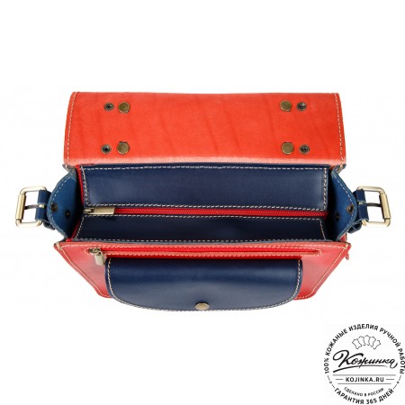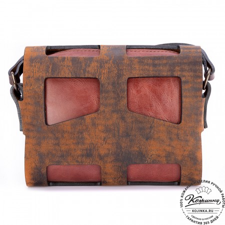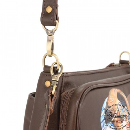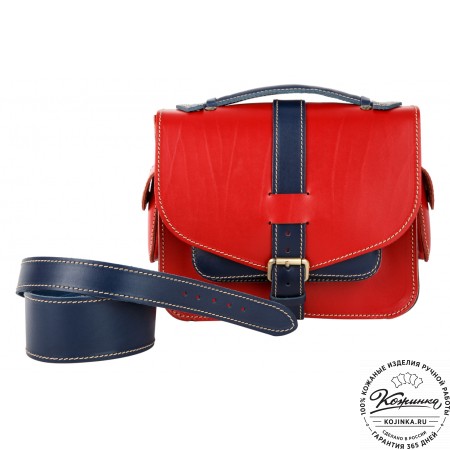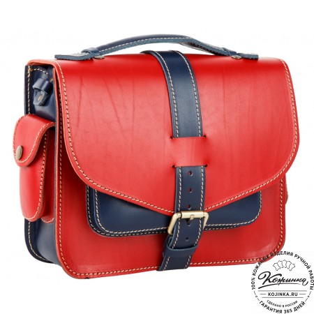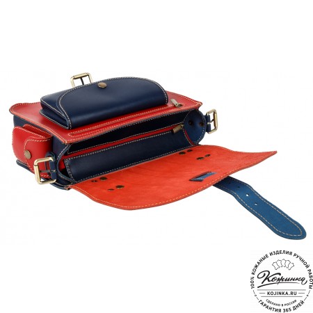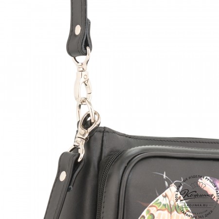 Плечевой ремень кожаный, регулируется по длине ременной пряжкой. Ремешок съемный, крепится по бокам на карабины.