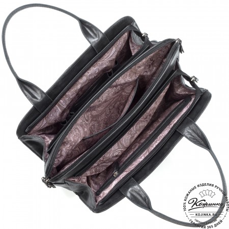 Сумка изготовлена из мягкой натуральной кожи высокого качества. Подкладка внутри выполнена из прочной ткани с узором.