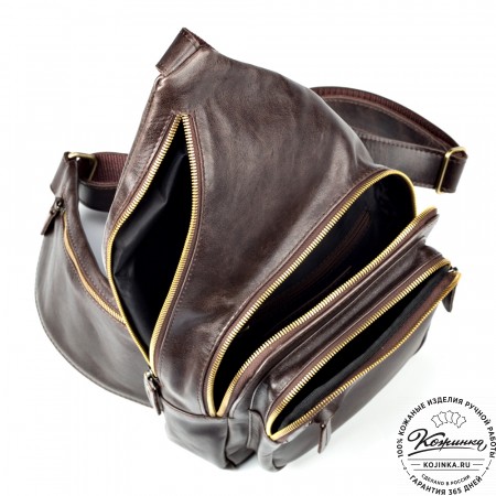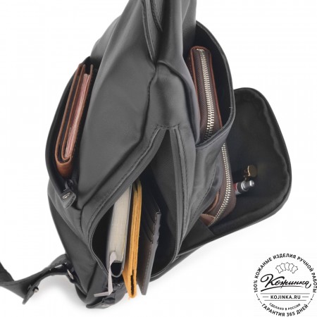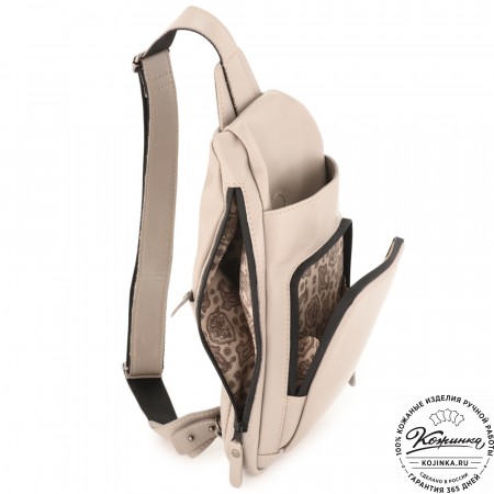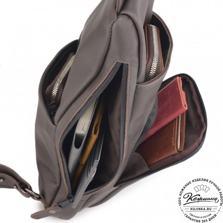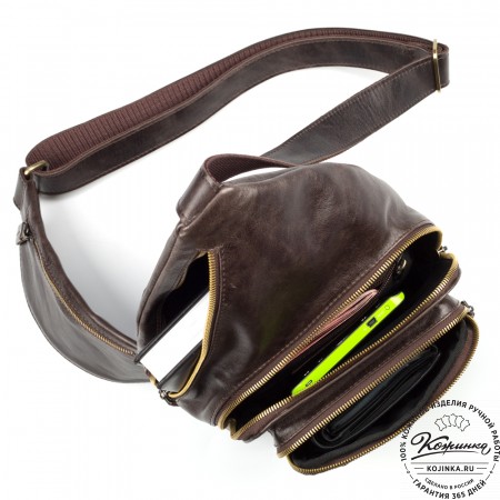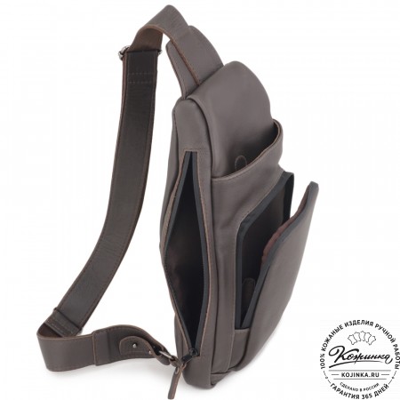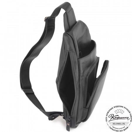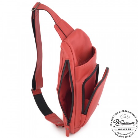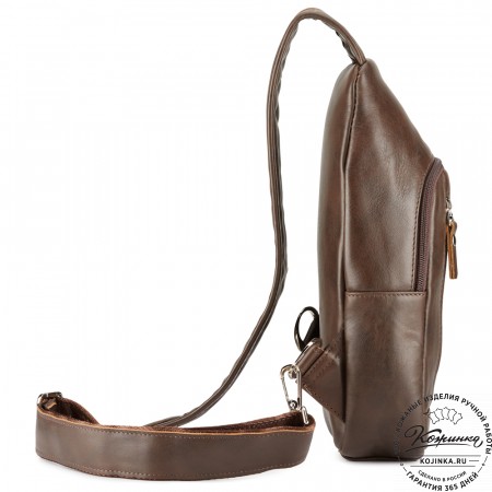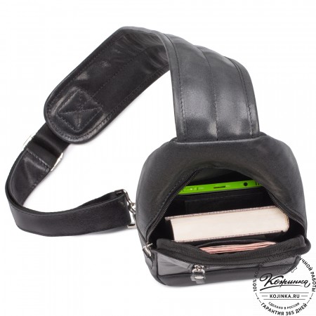 Такую диагональную сумку на одну лямку можно носить как на спине, так и на груди.