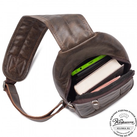 Кожаная нагрудная сумка "Аполлон" (рыжий антик) - самый удобный аксессуар для документов и денег!