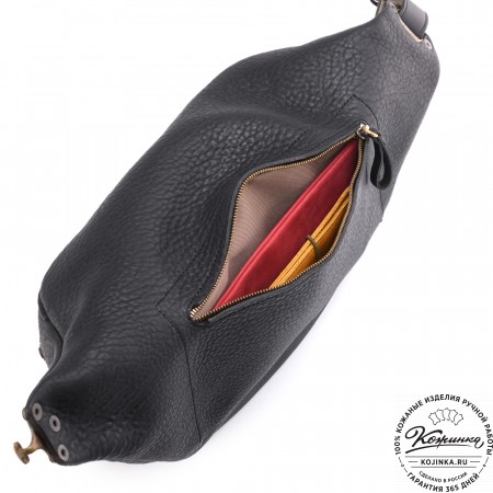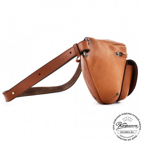 Лямка из кожи, усилена стропой, регулируется по длине.