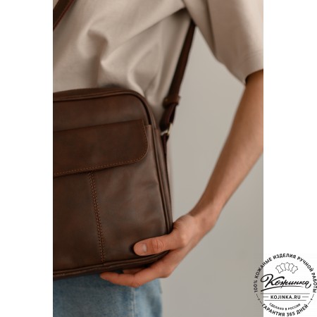 Сумка изготовлена из толстой натуральной кожи, прочная и долговечная. Удобный вариант на каждый день, когда нет необходимости носить портфель или большую деловую сумку.