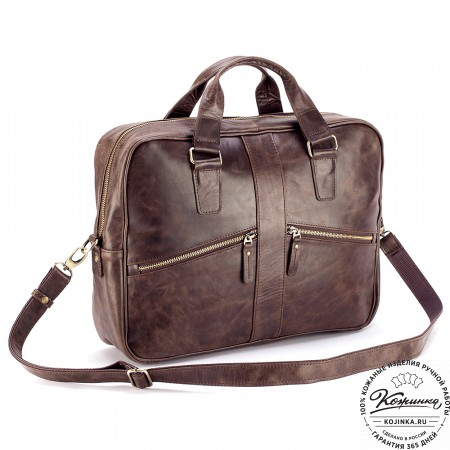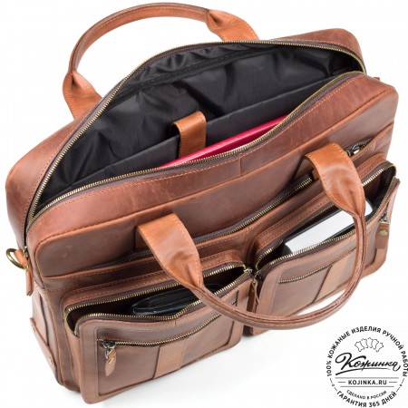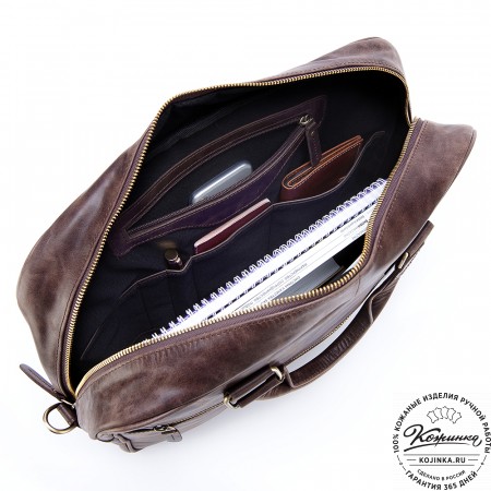 Портфель изготовлен из высококачественной натуральной кожи и прочной фурнитуры.