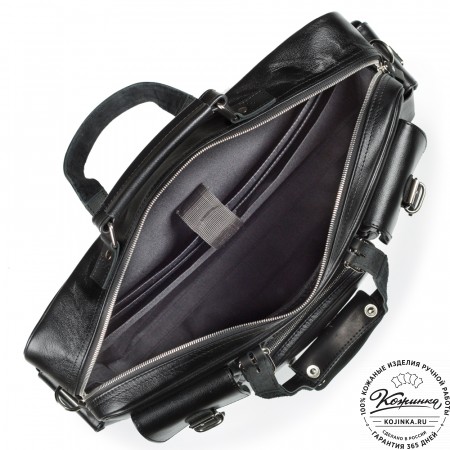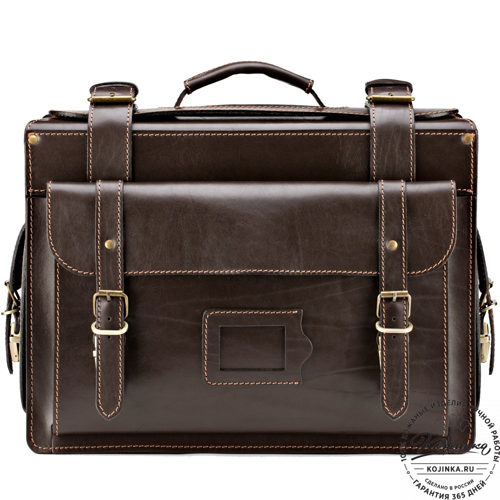Портфель изготовлено из жесткой натуральной кожи и прочной фурнитуры.
