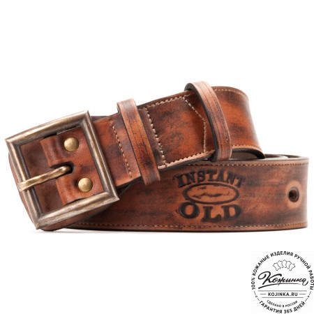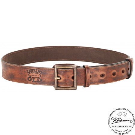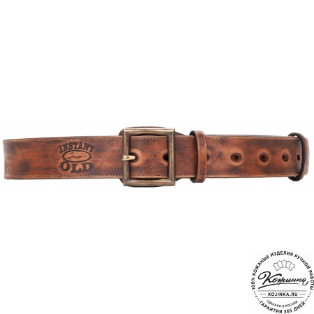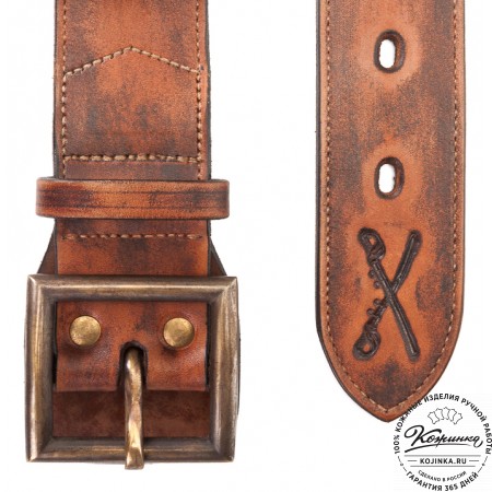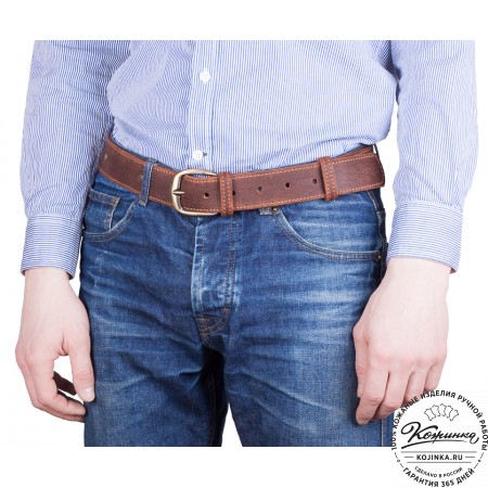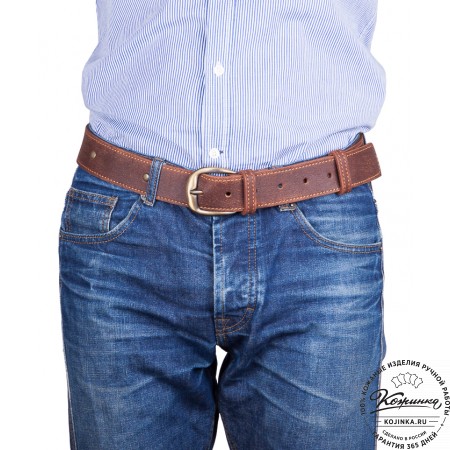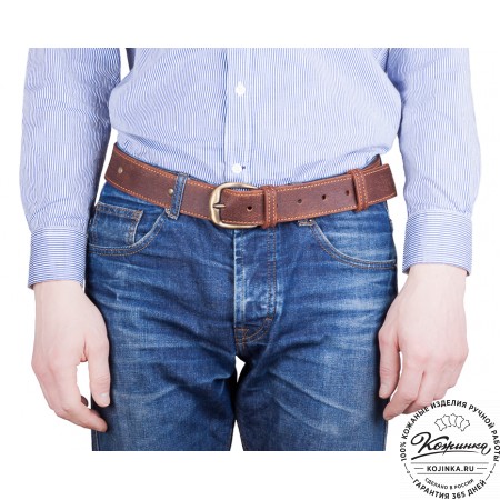 Толстая грубая шорно-седельная кожа высокого качества, удобная пряжка из латуни, лаконичная прошивка по всей длине ремня.