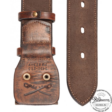 Кожаный мужской ремень Комбат (коричневый) - офицерский ремень.