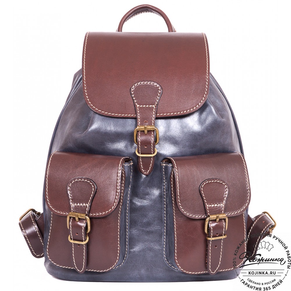 Сочетание мраморной синей мягкой кожи и темно-коричневой на клапане и карманах - идеальное сочетание!