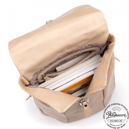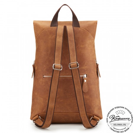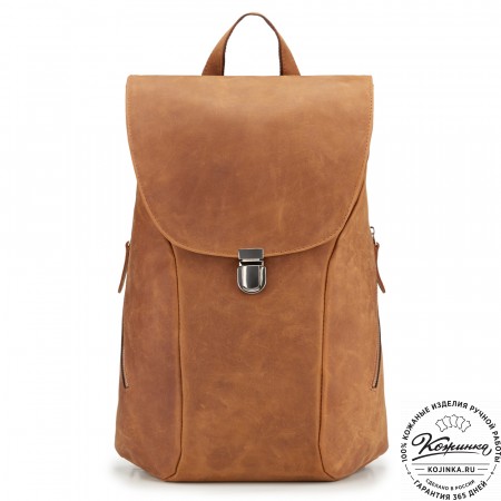 Сочетание фактурной кожи cинего цвета с гладкой коричневой кожей на клапане, кармане и лямках рюкзака - именно это делает Грэй таким интересным!