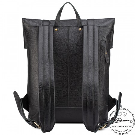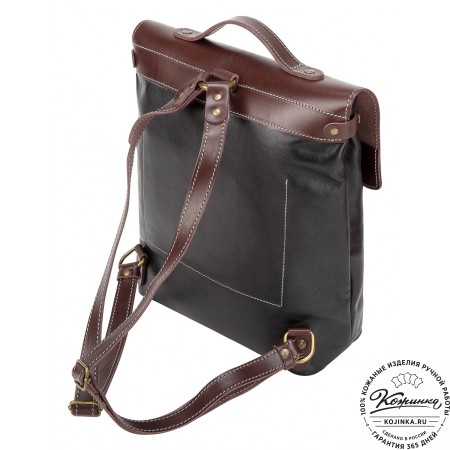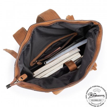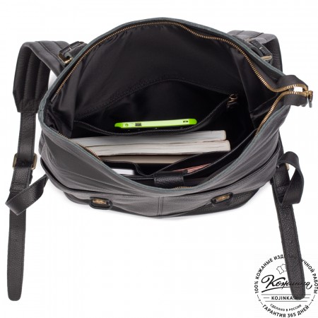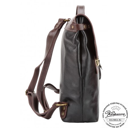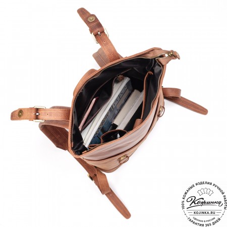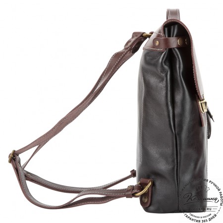 Лямки рюкзака из кожи, усилены стропой, регулируются по длине. Лямки можно соединить вмести молнией и удобно носить рюкзак на одно плечо.