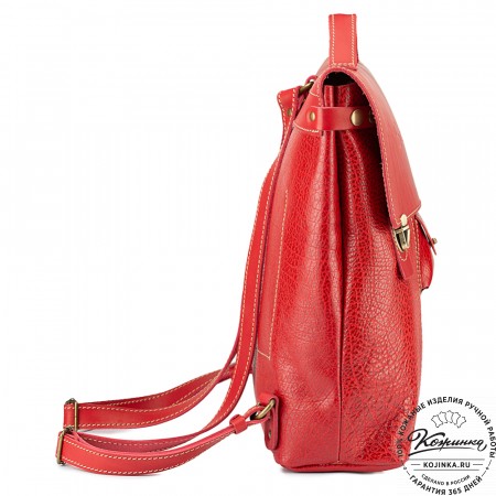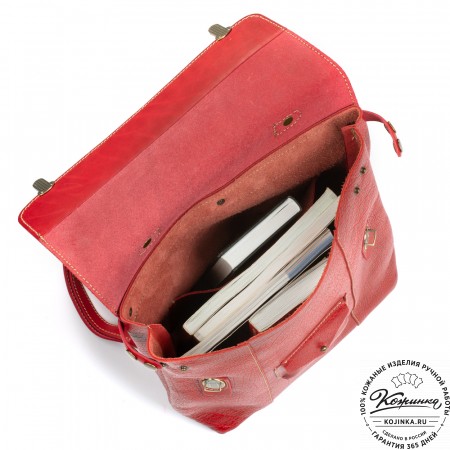 На модели представлен рюкзак "Пандора" красного цвета.