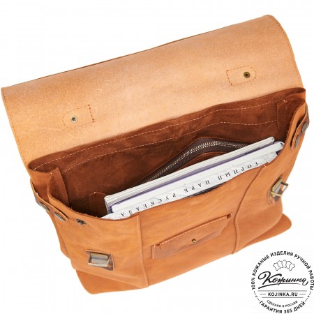 Кожаный рюкзак "Венгрия" – практичный и вместительный рюкзак с двумя отделениями.