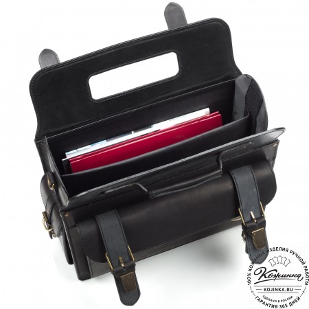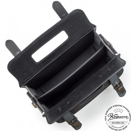 Кожаный ранец "Максимус 3" - рюкзак из 100% толстой прочной чёрной кожи с большими и удобными отделениями.