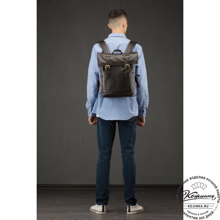 На модели представлен рюкзак "Вассерман" в темно-коричневом цвете.