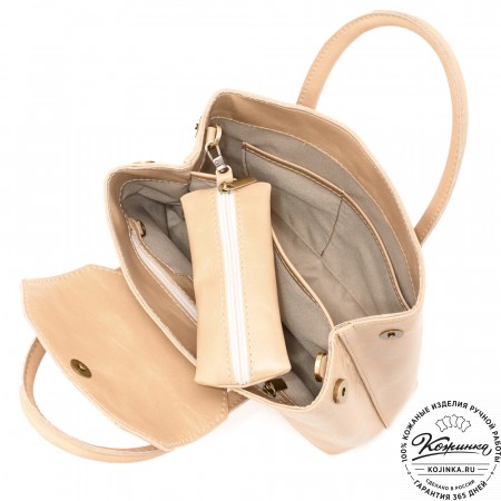 Сумка изготовлена из качественной натуральной кожи двух видов и прочной фурнитуры.