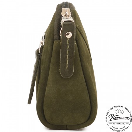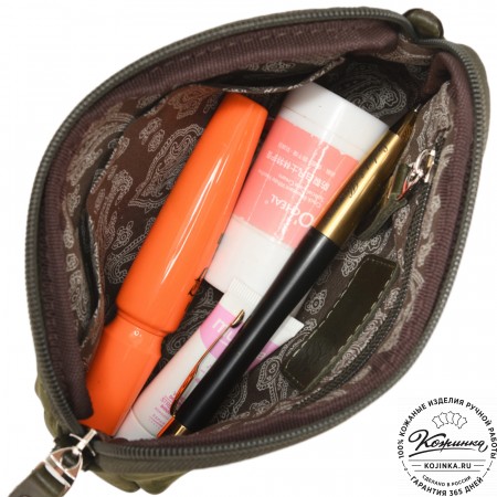 Кожаная ручка-петля съемная, крепится на боковом сгибе на небольшой карабин.