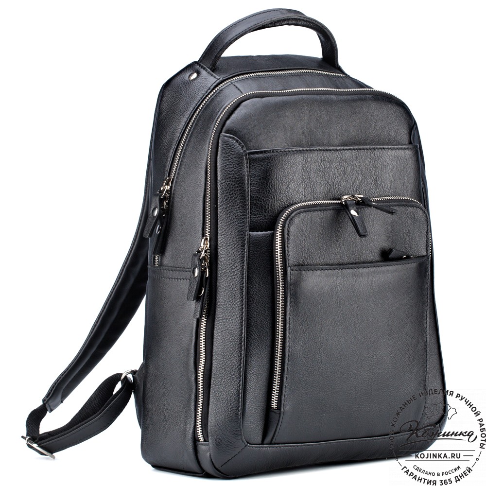 Кожаный рюкзак "Марвин" (чёрный) - стильный рюкзак из натуральной кожи, удобная и вместительная модель с интересным функциональным дизайном.