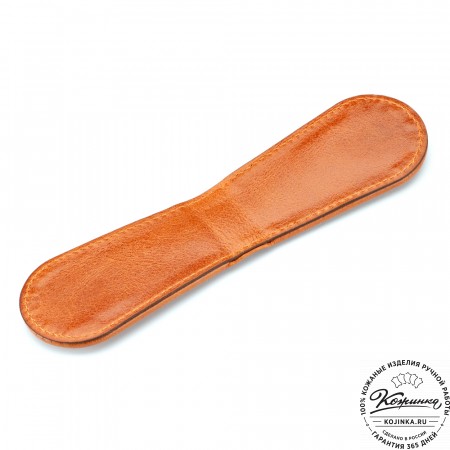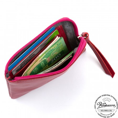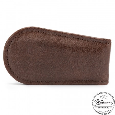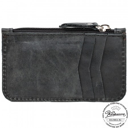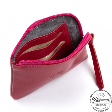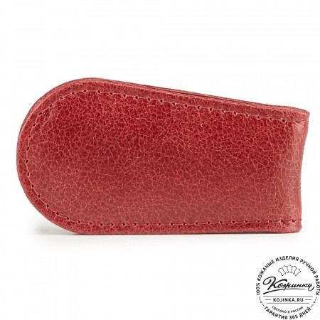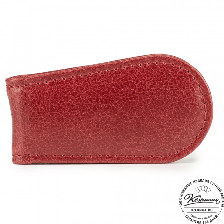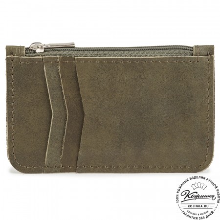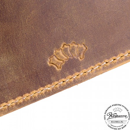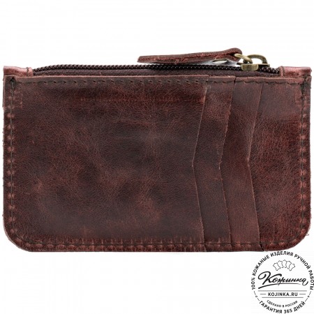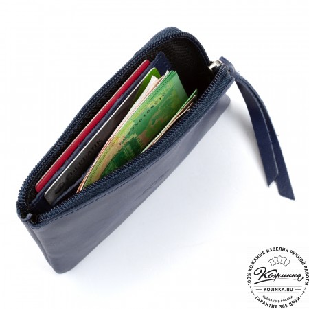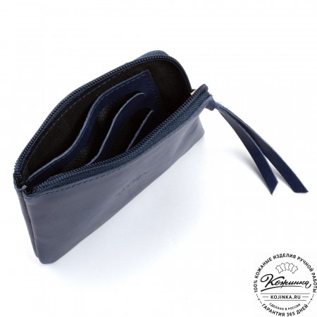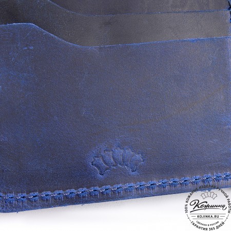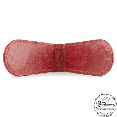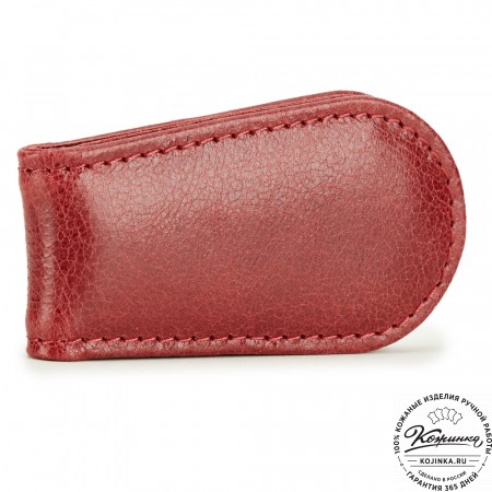 Футляр изготовлен из натуральной кожи. Пластиковая стенка с прорезью позволяет удобно вынимать и складывать карты.