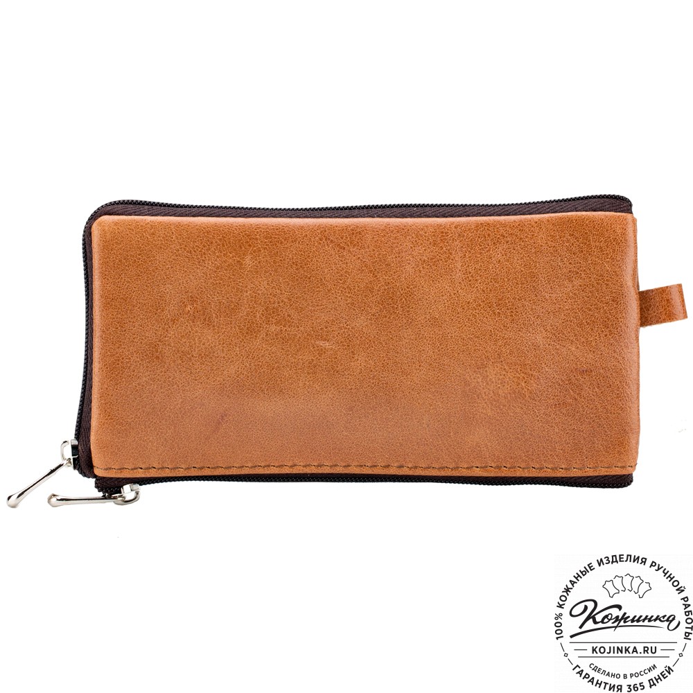 Кожаная ключница "Шанхай" (рыжая) – большая удобная ключница с дополнительным кармашком на молнии.