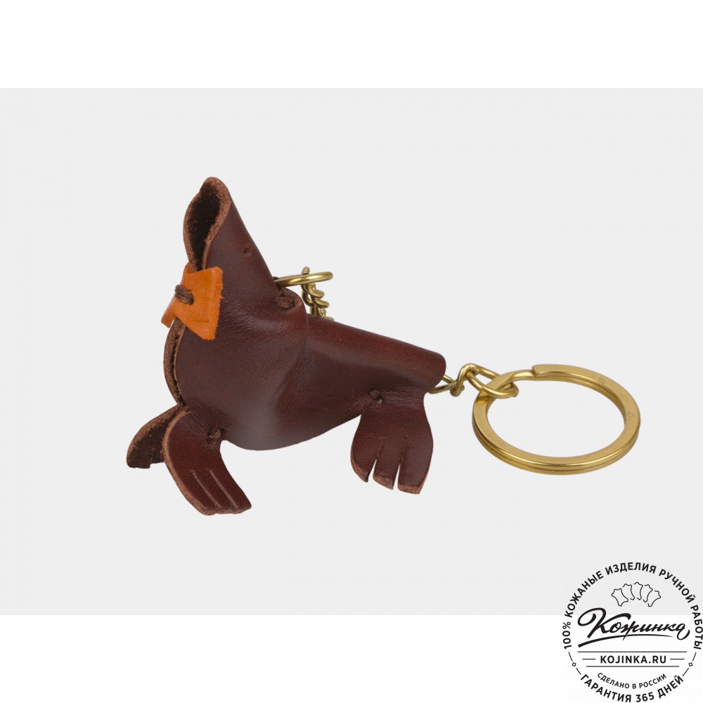 Кожаный брелок "Морской котик" (коньяк) - оригинальный аксессуар из натуральной кожи.